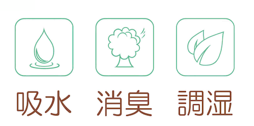 においの原因のほとんどは、水溶性の分子に付着しているものです。珪藻岩は湿気を吸着すると同時にこれらのにおい分子も吸着し、さわやかな室内環境を保ちます。